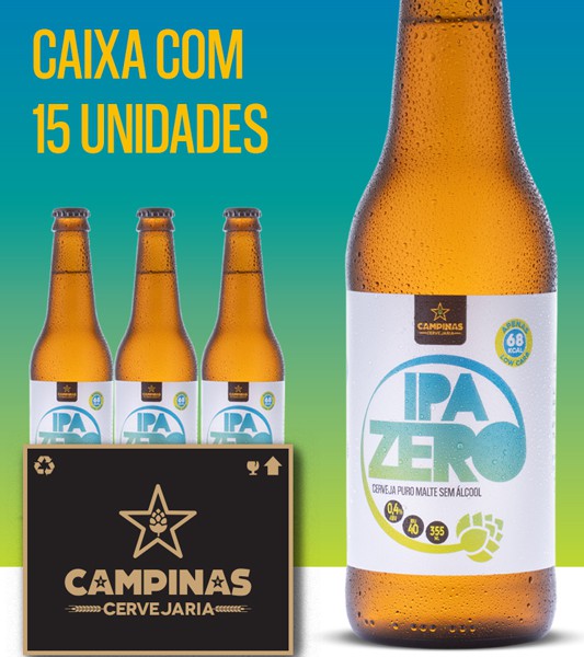 Caixa Fechada com 15 Garrafas da CAMPINAS IPA Zero - Cerveja Sem Álcool