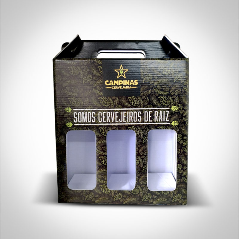Produzida com materiais resistentes e acabamento sofisticado, a caixa acomoda perfeitamente garrafas da linha Campinas, mantendo as cervejas seguras e valorizando o visual do presente. Seu formato foi pensado para realçar o encanto das cervejas artesanais, tornando o momento da entrega uma celebração à parte.